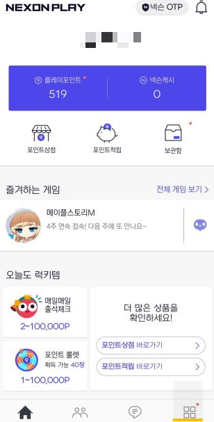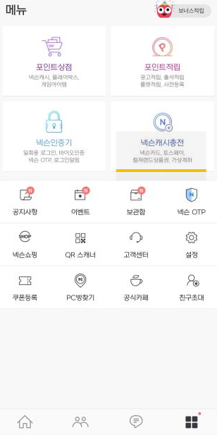 2) 모바일 앱을 열어서 넥슨 로그인 후 오른쪽 아래에 '네모' 클릭